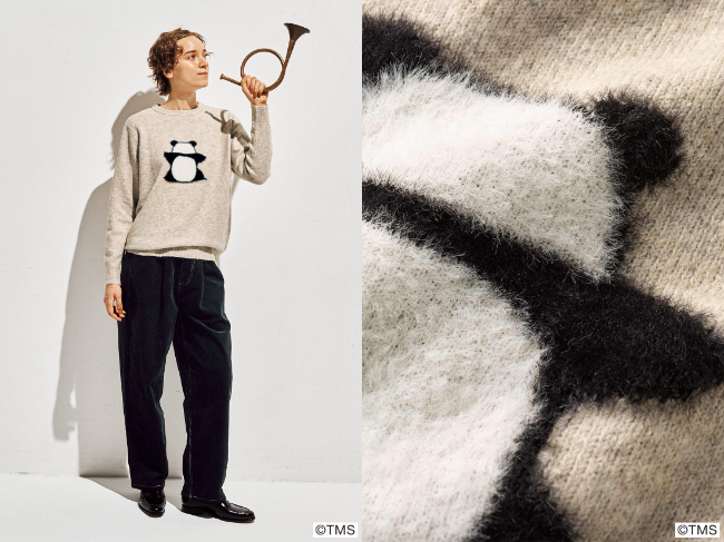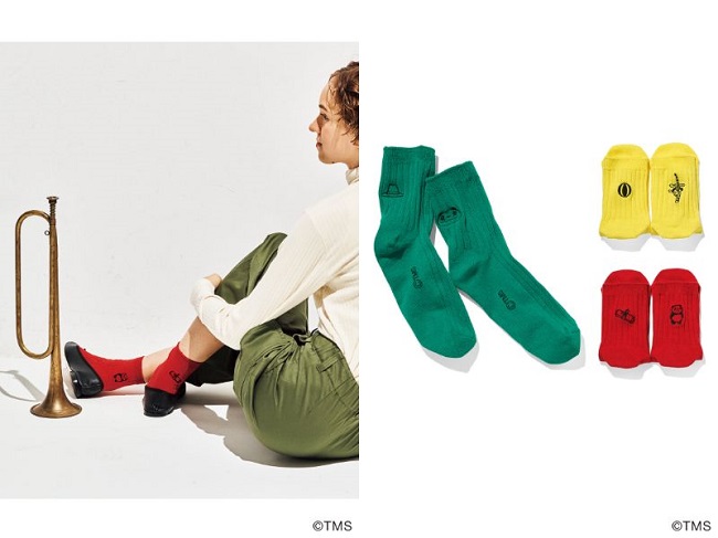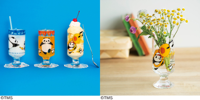 印象的なオープニングのラインダンスシーンをそのまま形にした「もこもこポーチ」をはじめ、昔の純喫茶気分も味わえる「オープニングアートの脚付きグラス」、作中の名シーンを再現した「パンちゃんの竹筒風リップケース」のほか、ニット、スウェットトップス、ソックスなど、懐かしさの中に新鮮さを感じるおしゃれなラインナップになっています。