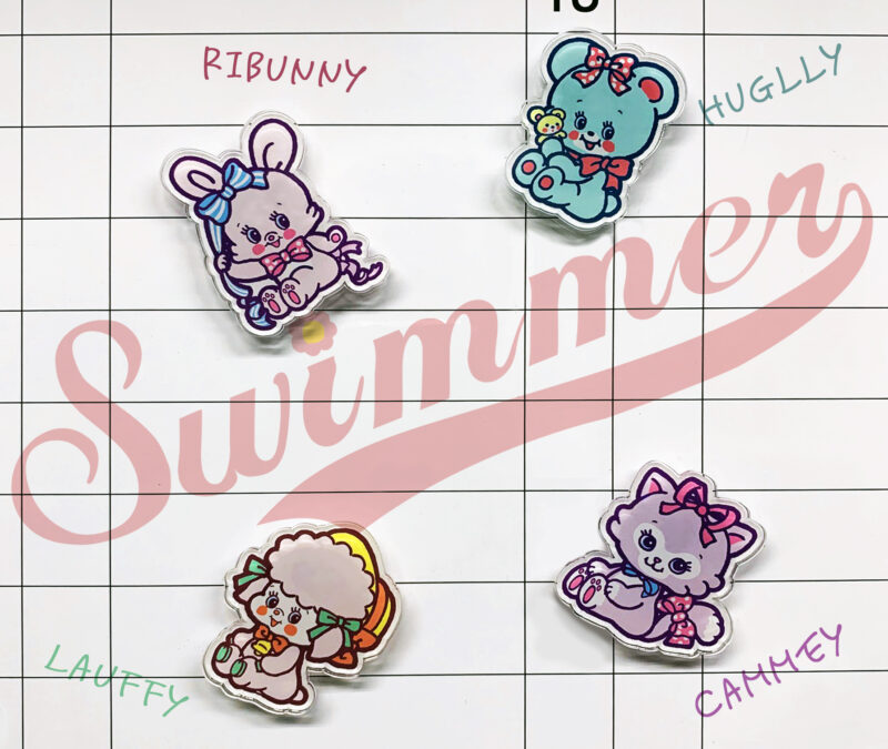 SWIMMERフェイスぬいぐるみバッジ (約5cm×5cm×2cm):各1,100円(税込)