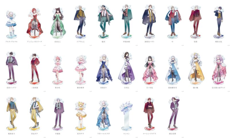 「虹」をテーマに、総勢28名のライバーが七色のスーツ・ドレス衣装をまとった姿の描きおろしビジュアルを中心としたグッズが展開されます。