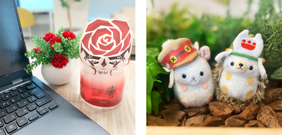 今回特に注目なのは、人気モンスター「ラバラ・バリナ」をモチーフにしたグラス付きペーパー加湿器。デスクに置くだけで華やかさを添える、美しさと実用性を兼ね備えたハンターさん必見アイテムとなっています。