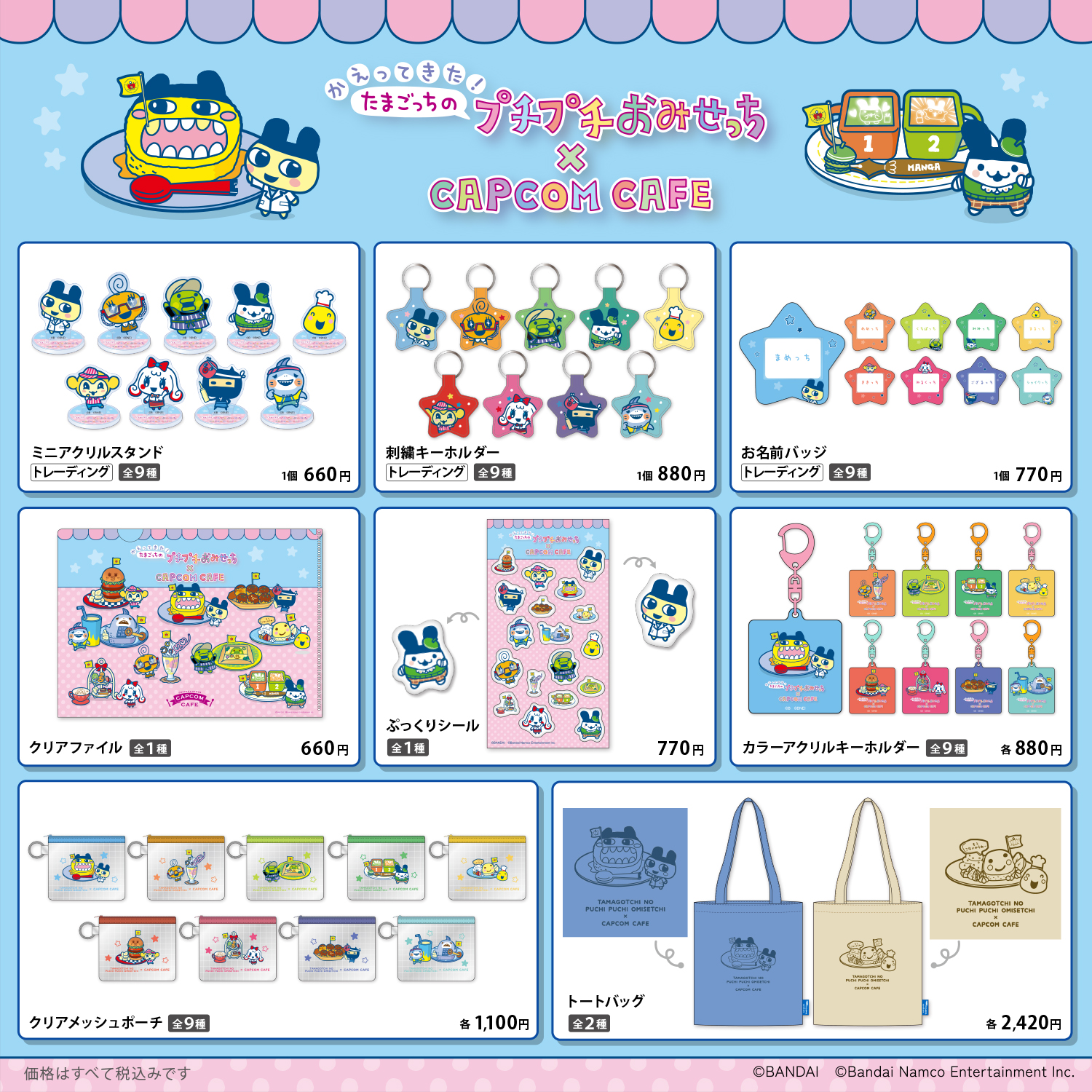 オリジナルグッズには、家庭用ゲーム「たまごっちのプチプチおみせっち」をモチーフにした描き起こしイラストを使用しています。