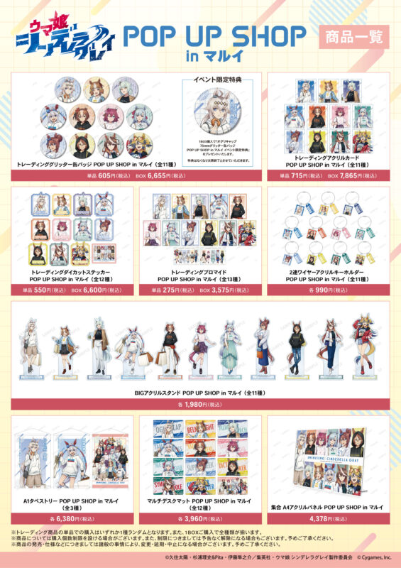 2026年1月17日(土)より新宿マルイ アネックス、2月6日(金)より神戸マルイの計2店舗にて「アニメ『ウマ娘 シンデレラグレイ』POP UP SHOP in マルイ」の開催が決定いたしました。