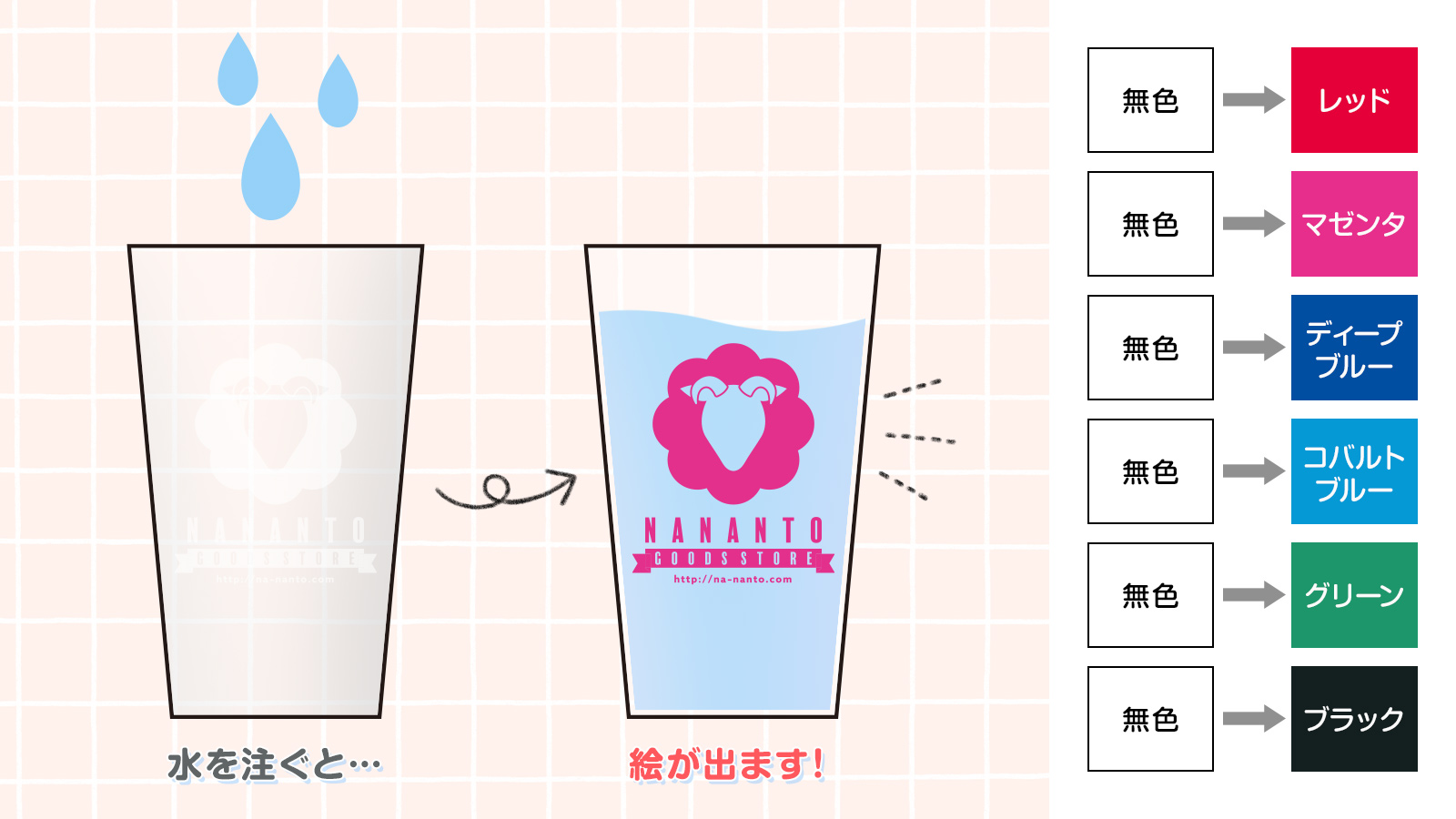 冷たいものを注いで絵柄が変わる