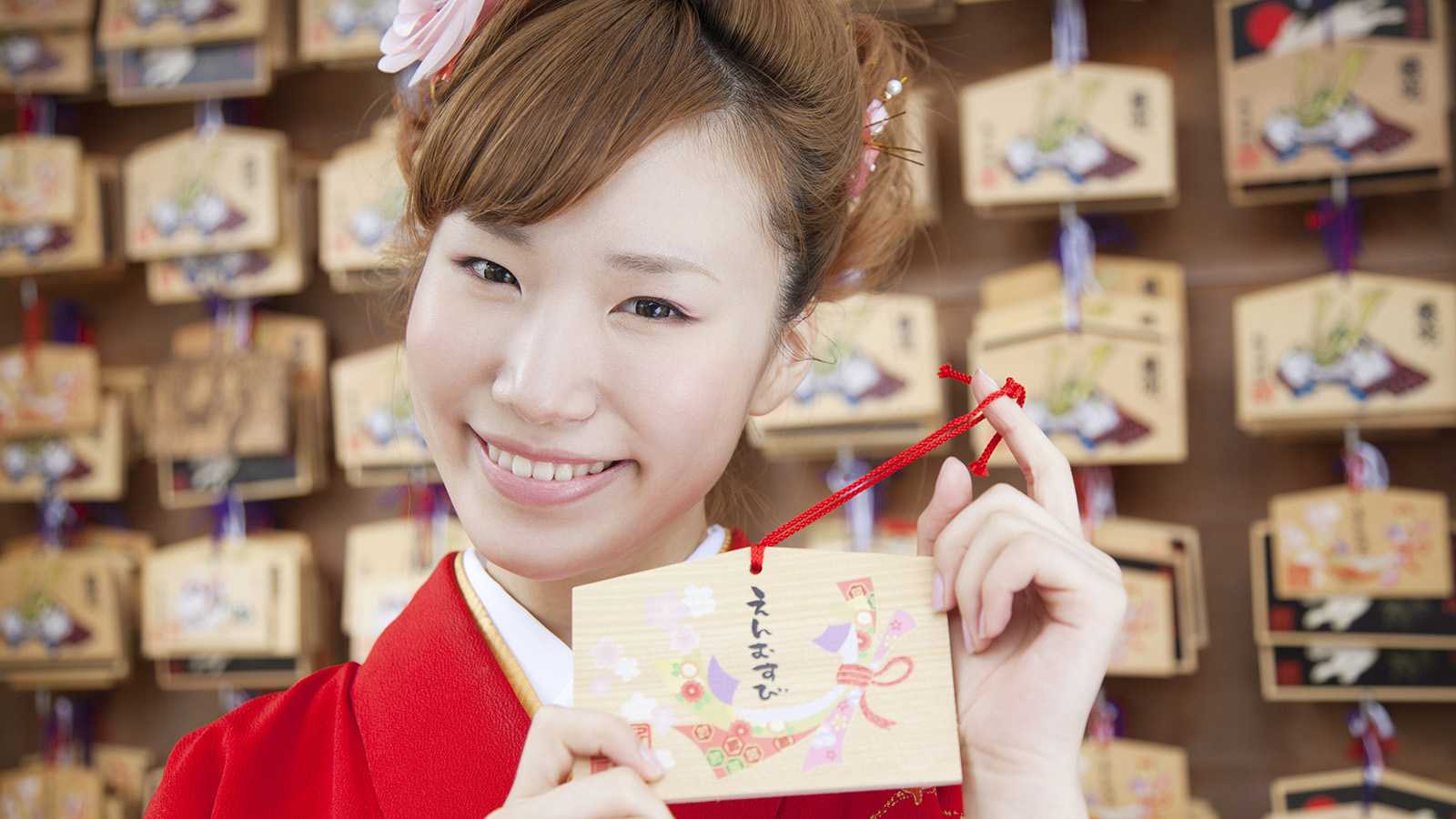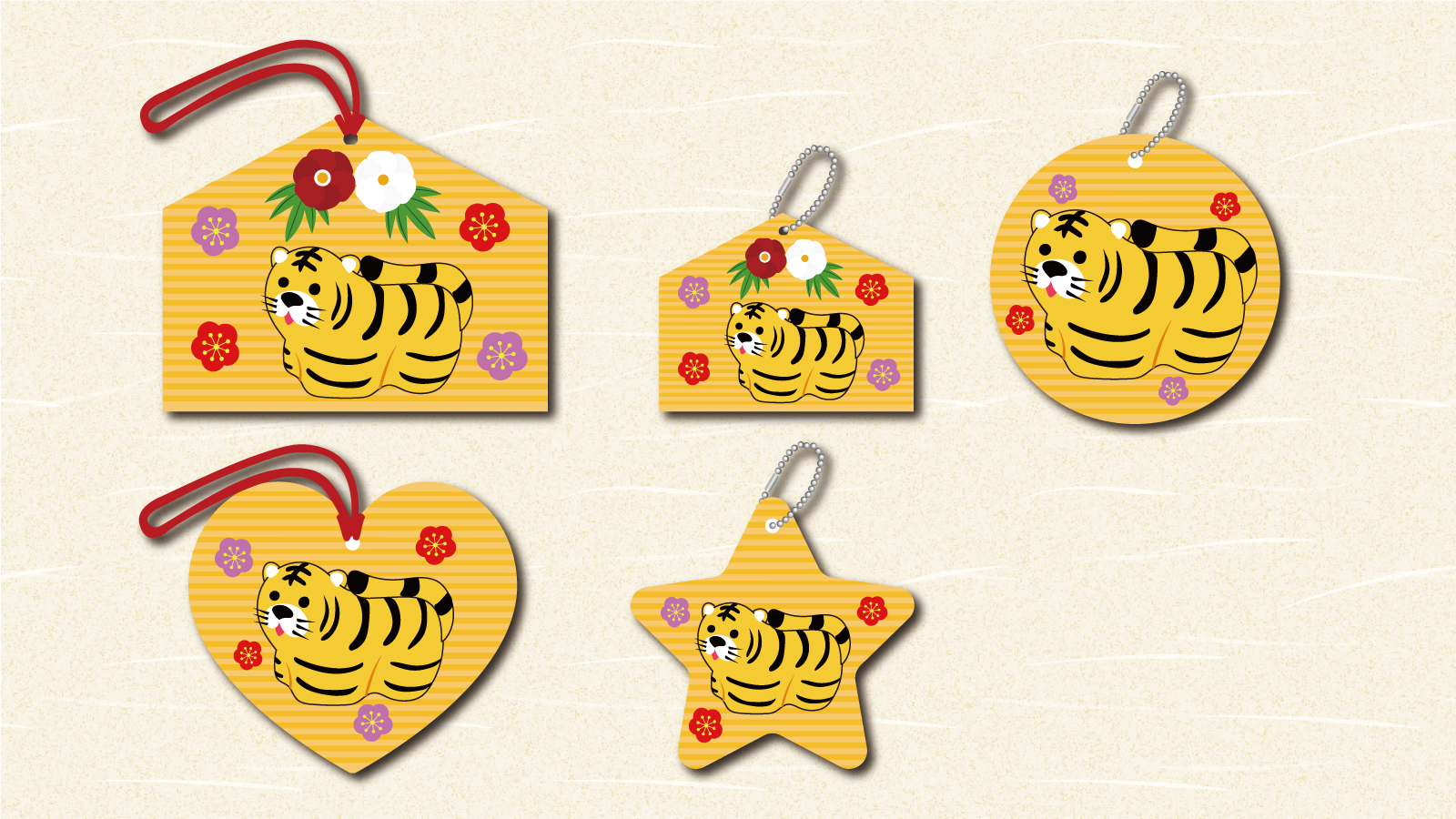 神社やお寺の祈祷など和物グッズとして人気の絵馬は、和風のデザインとも相性ばっちりです!