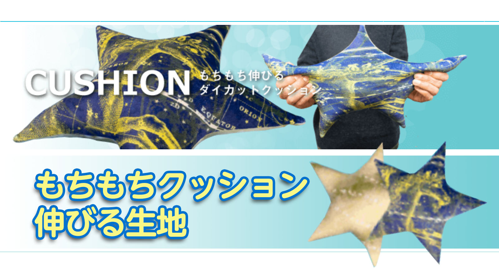 やわらかくてもっちりと伸びる生地を使った「もちもちクッション」が製作できます。アニメやゲームの景品、ライブグッズとして大人気のアイテムです。